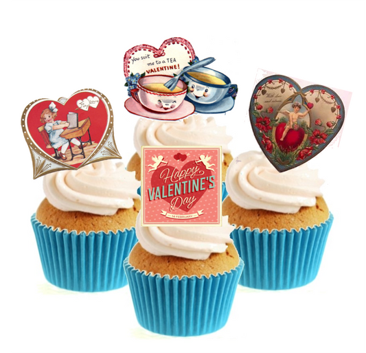 Vintage Valentines Collection Stand Up Cake Toppers (12 pack)