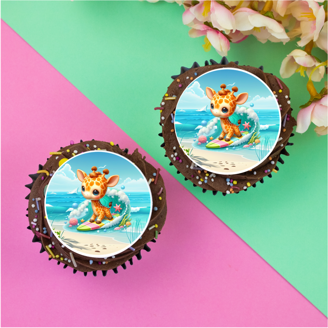 Surfing Giraffe 2" / 5cm discs for cupcakes