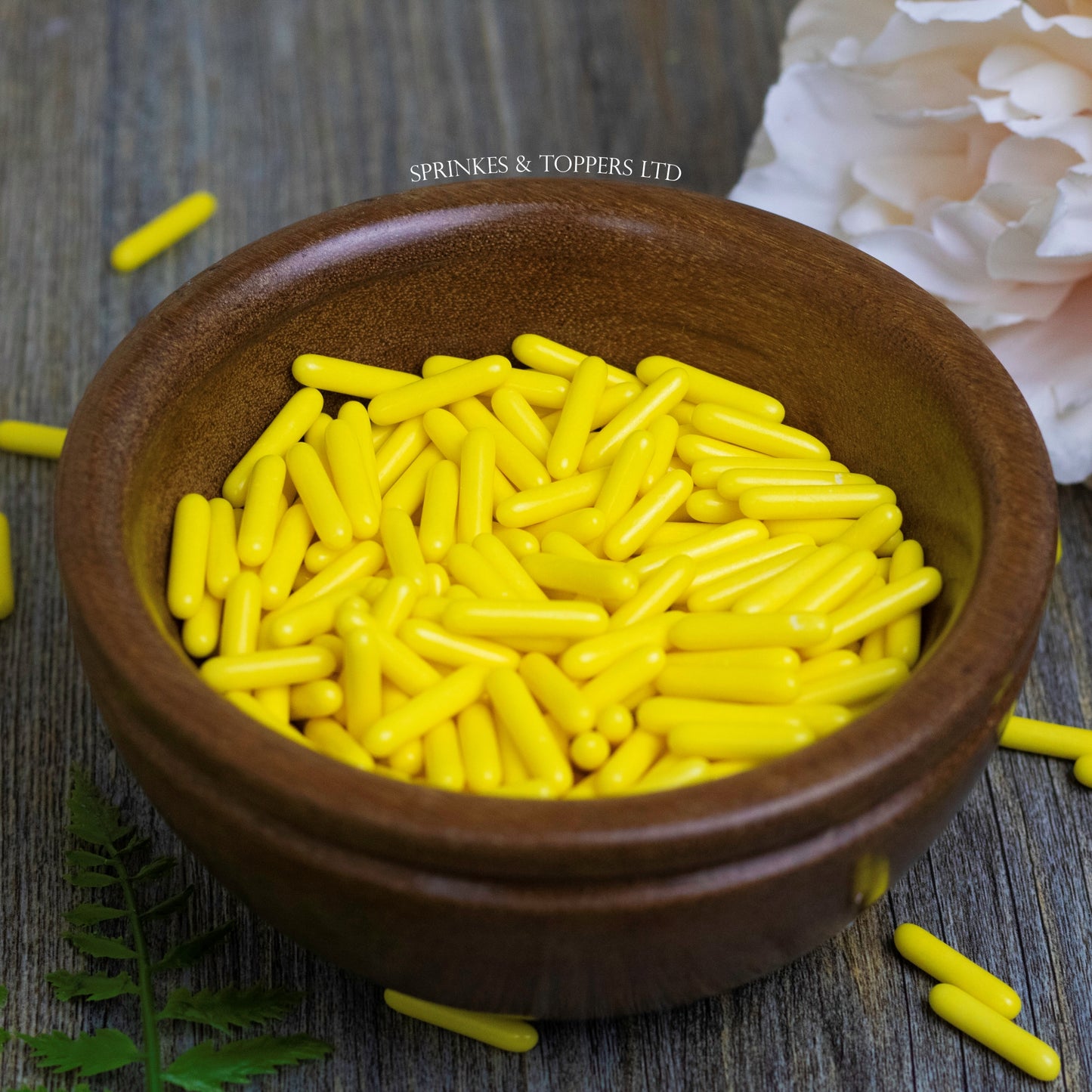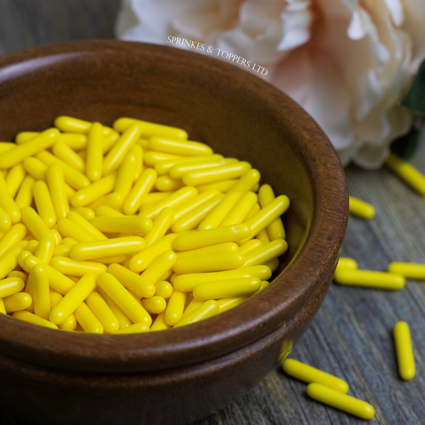Yellow Polished Macaroni Rods (20mm) Sprinkles Cupcake / Cake Decorations