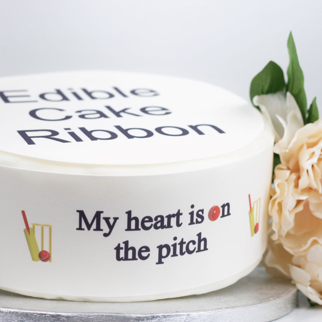 Our completely edible cake decoration is printed using food grade edible inks and is best applied to fondant covered cakes, but can also be used on buttercream. Plus, it's gluten-free, dairy-free, and vegan, making it a great option for dietary restrictions. Don't settle for traditional ribbon - switch it up and make your cakes stand out with our Cricket Themed Icing Cake Ribbon!