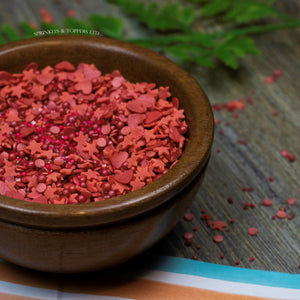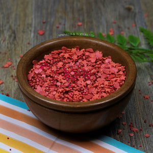 Lovely mix of red glimmer hearts (8mm), confetti (4mm) , pearls (3-4mm), sugar, red stars & 100s & 1000s